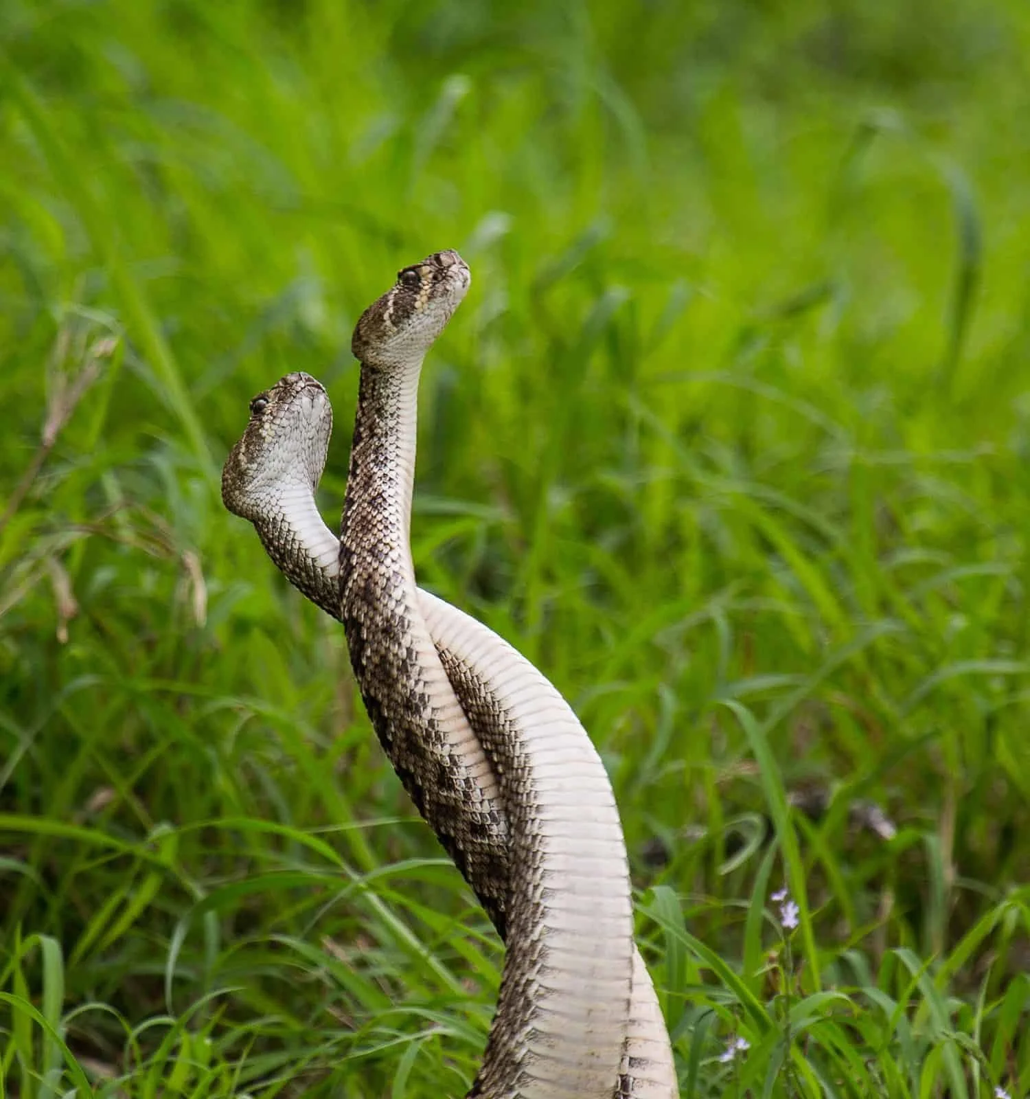 As you see in video of two rattlesnakes “standing up” next to each other. Half of their bodies are up off the ground, rising above the surrounding grass or brush. It looks like a beautiful mating dance, but the reality is these are actually two males in combat. A third snake, which is female, will usually be somewhere nearby.