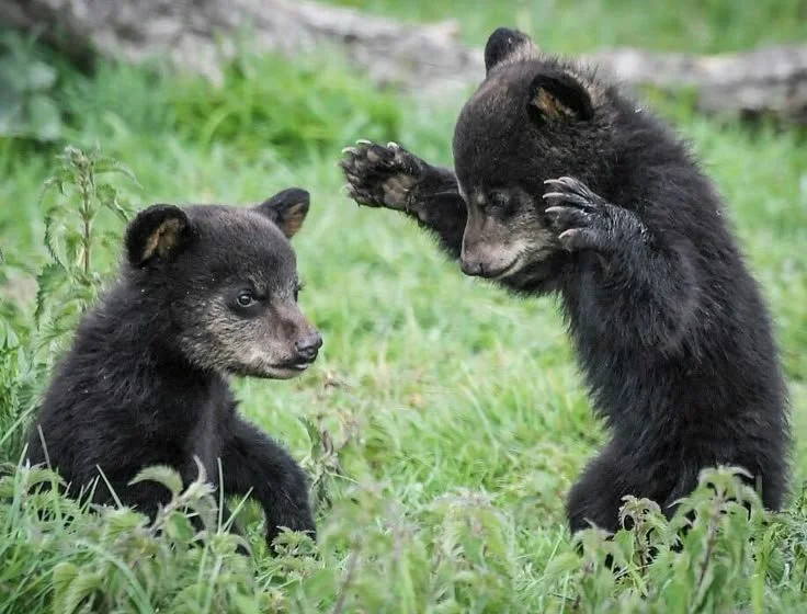 A pair of images showing Black Bear sow and cubs (photographers unknown). They are a unique, large omnivore that can be quite exciting to encounter up close!