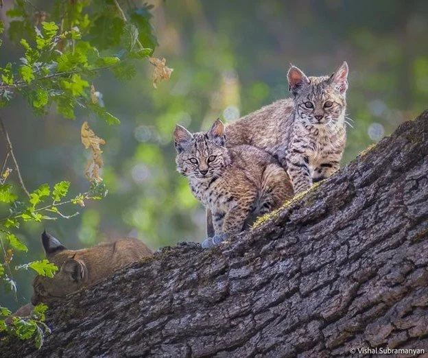 A Bobcat mother with her bobkittens. Photo Credit: Vishal Subramanyan